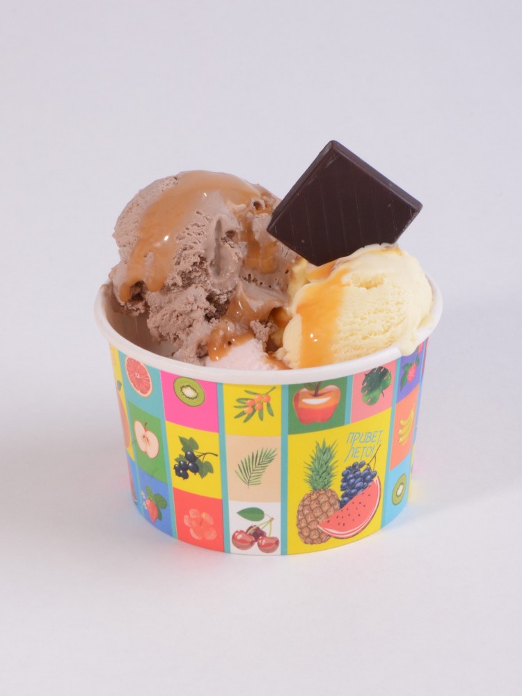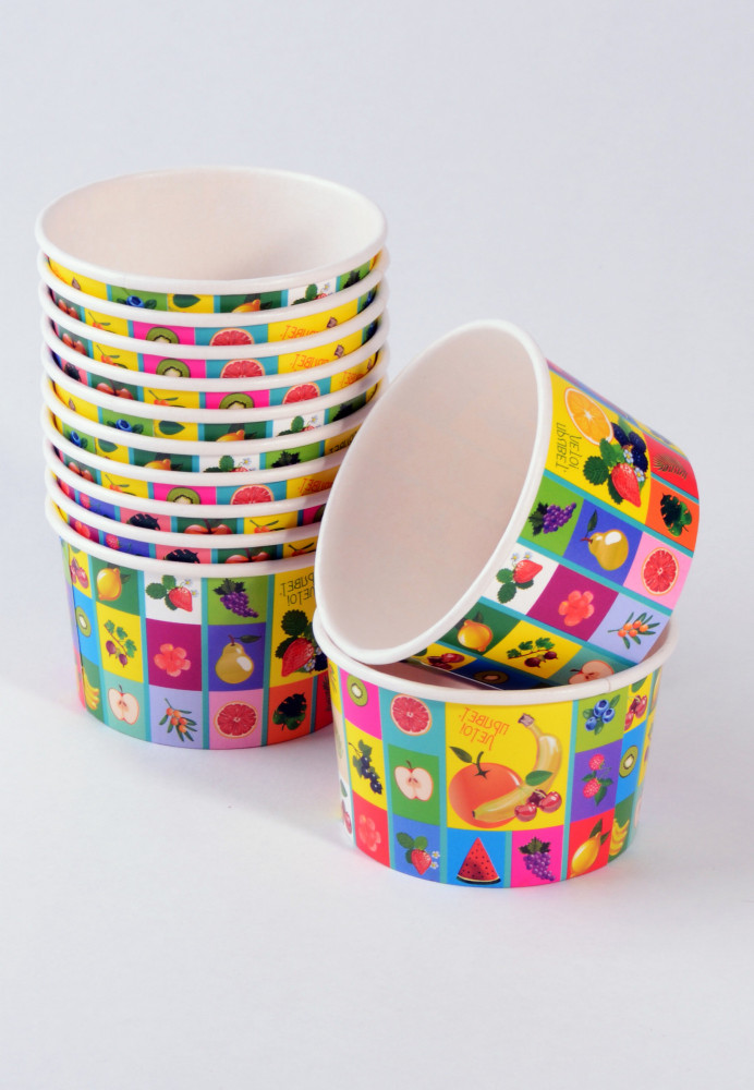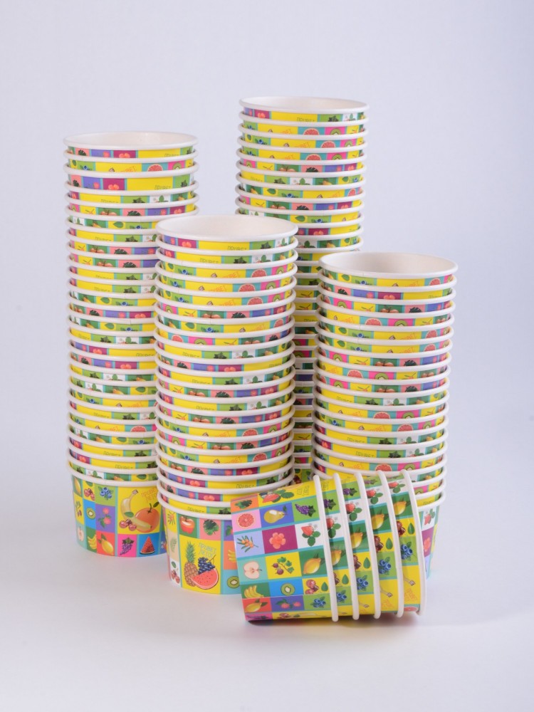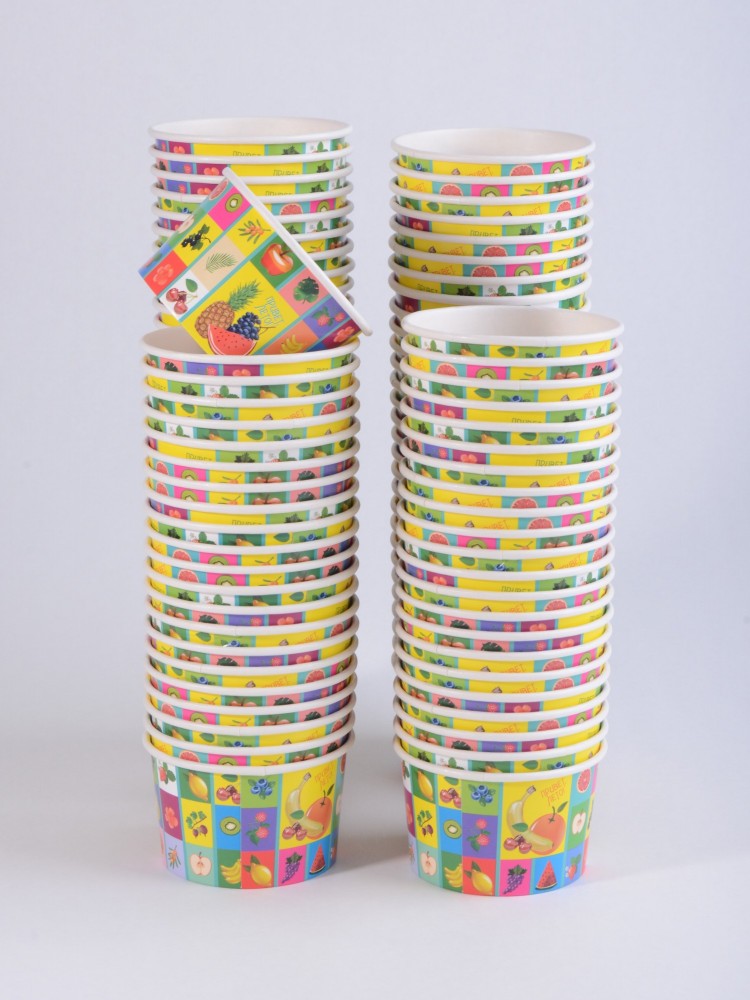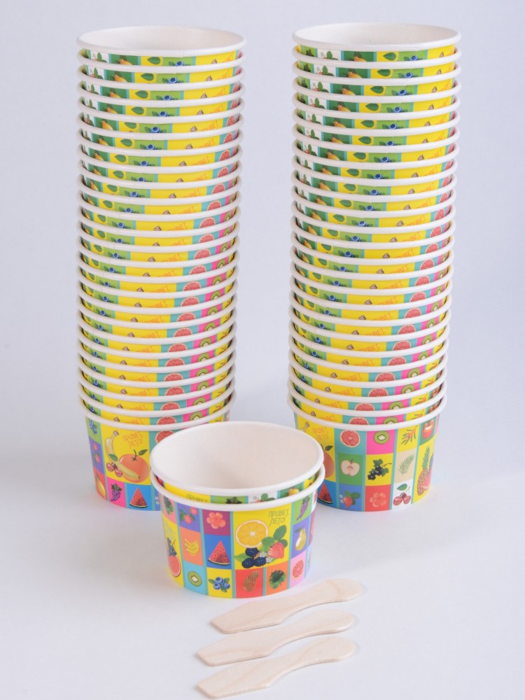 720 штук в упаковке. Дизайн привет лето, фрукты. Высота креманки - 51 мм, диаметр верхней части - 85 мм, диаметр нижней части - 69 мм.