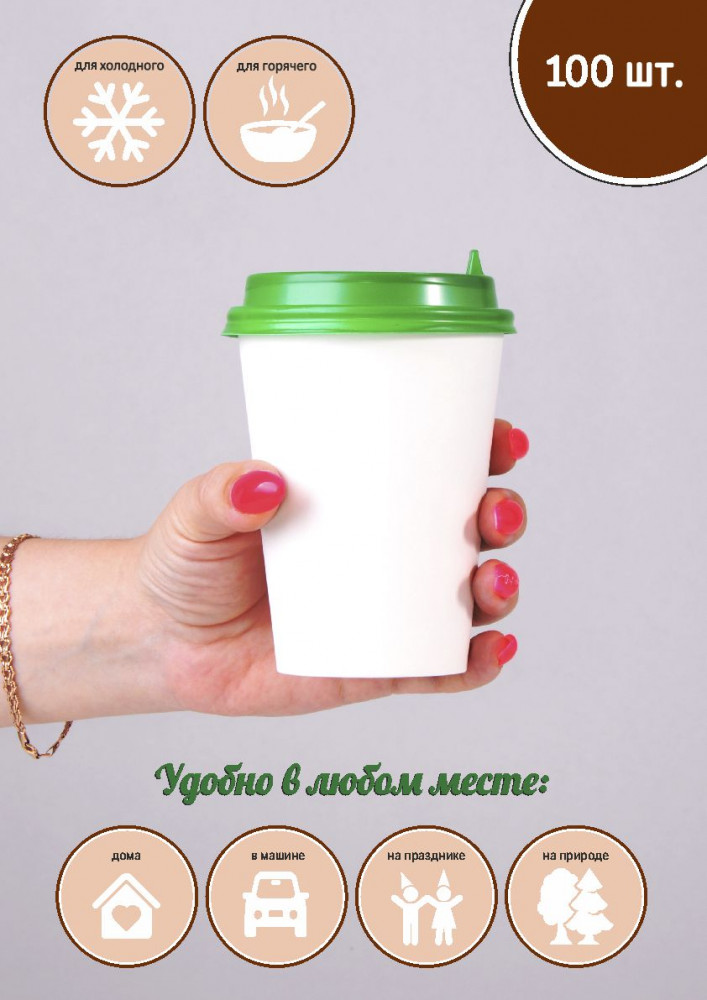 Крышка для кофейного бумажного стакана (д.90мм) 350мл и 500мл, зеленая, РФ. Идеально подходит по размеру, для удобного использования при транспортировке, в машине или дома. Условия хранения: температура не ниже 5°С и относительная влажность - не более 80%. Отсутствия прямого солнечного света, посторонних запахов.