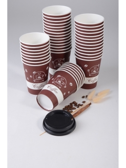 Стакан бумажный, Дизайн кофе, для холодных и горячих напитков 350 мл, в упаковке 100 шт. Бумажные одноразовые стаканы удобно использовать в повседневной жизни, как дома, так и на работе. Стаканчики сделаны из целюлозного картона, плотностью 280 г/м.кв. В руке бумажный стакан с этой плотностью не чувствуется хлипким. Упаковываются стаканы по 100 штук, каждая пачка в отдельном пакете.Условия хранения: температура не ниже 5°С и относительная влажность - не более 80%. Отсутствия прямого солнечного света, посторонних запахов.